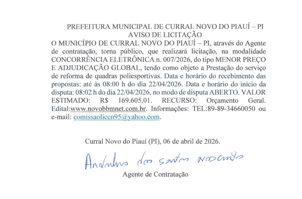 PREFEITURA MUNICIPAL DE CURRAL NOVO DO PIAUI