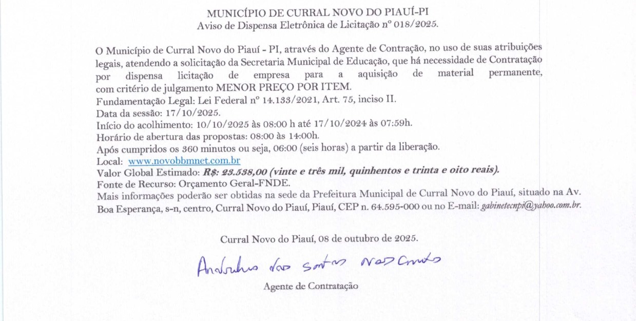 AVISO DE DISPENSA DE LICITAÇÃO Nº 018 /2025
