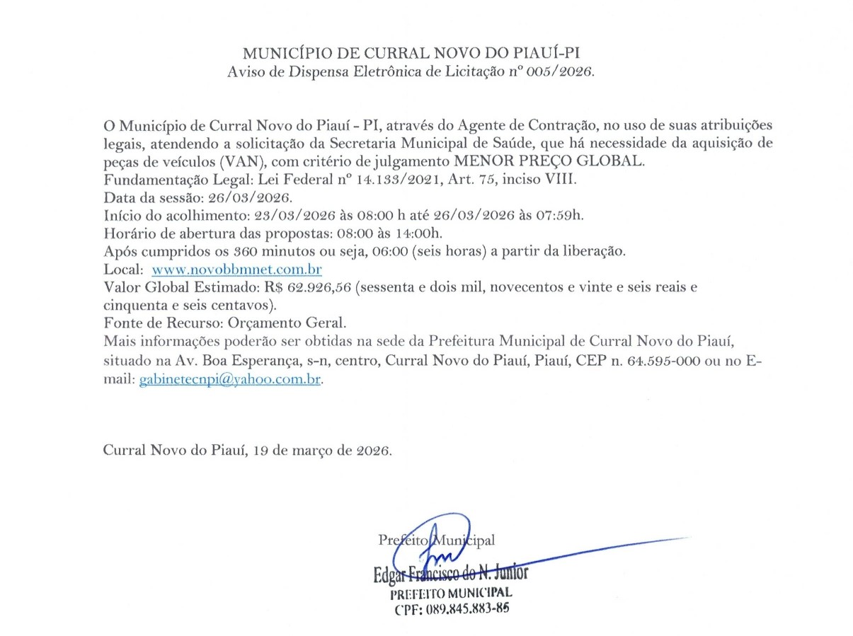 PREFEITURA MUNICIPAL DE CURRAL NOVO DO PIAUÍ