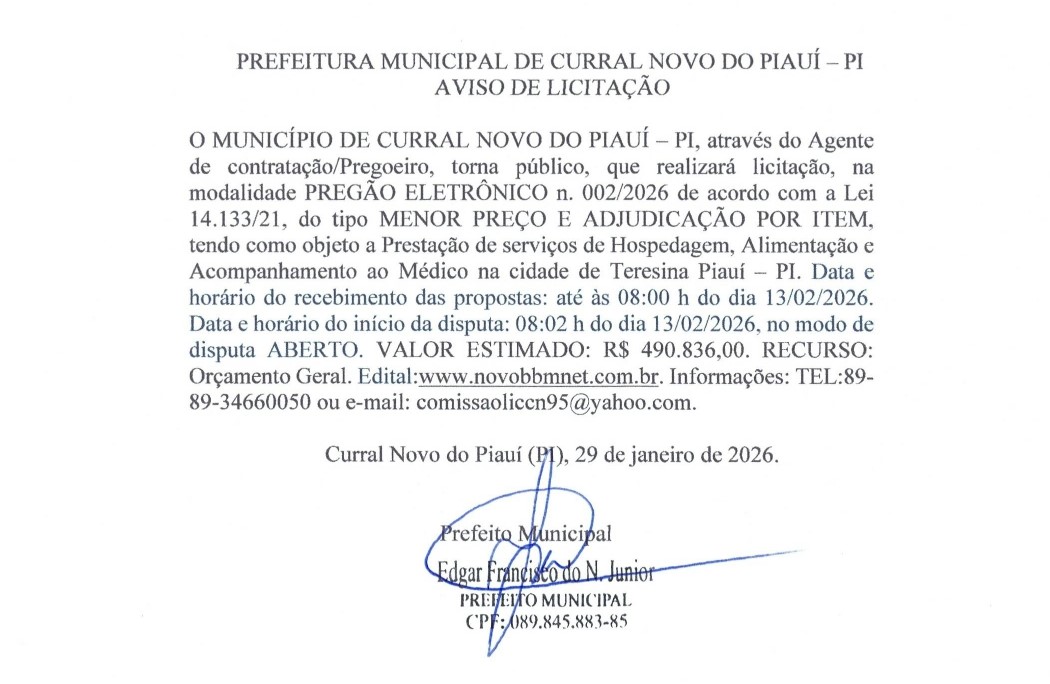 PREFEITURA MUNICIPAL DE CURRAL NOVO DO PIAUÍ