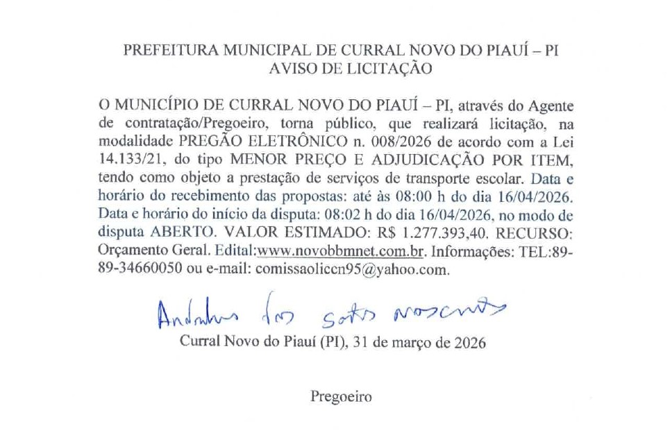 PREFEITURA MUNICIPAL DE CURRAL NOVO DO PIAUÍ